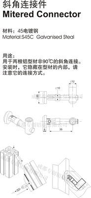 用于兩根鋁型材非90度的斜角連接。安裝時,它隱藏在型材的內(nèi)部,請注意它的連接方式。