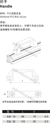 將手柄安裝在型材上,可便于開啟與關(guān)閉。連接螺栓與T型螺母塊需另配。